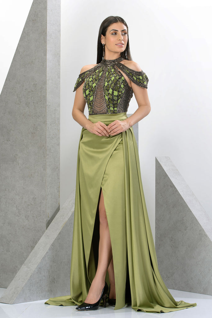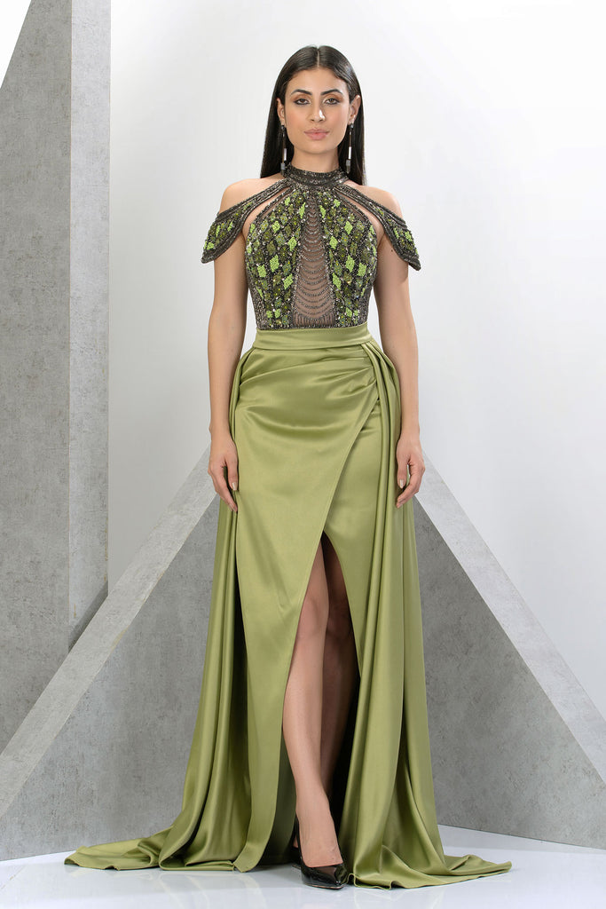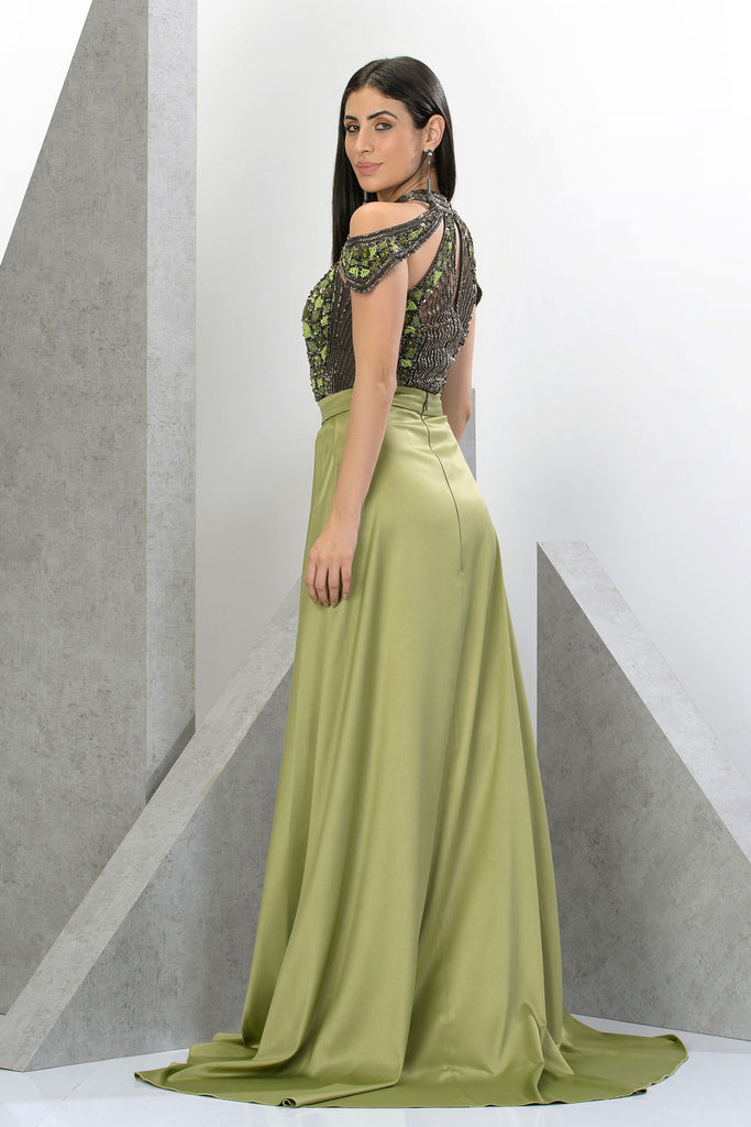 Color: GreenModel: Model Wears Size S, Model Height: 5'11"Fabric Composition: Sequin (100% Polyester), Crepe (100%...