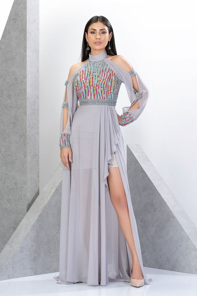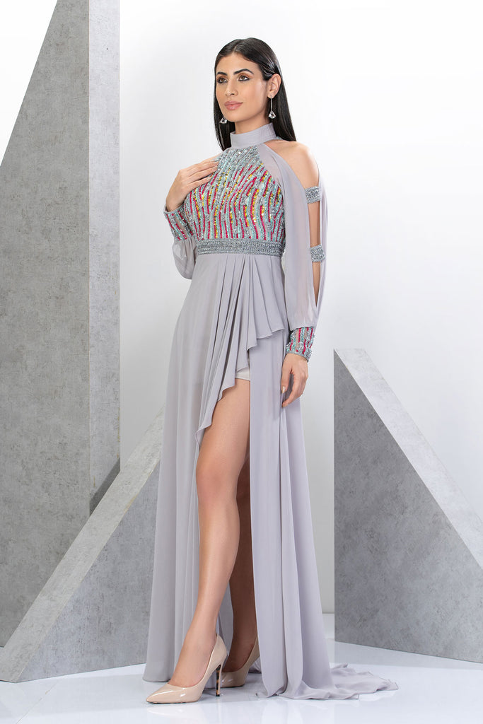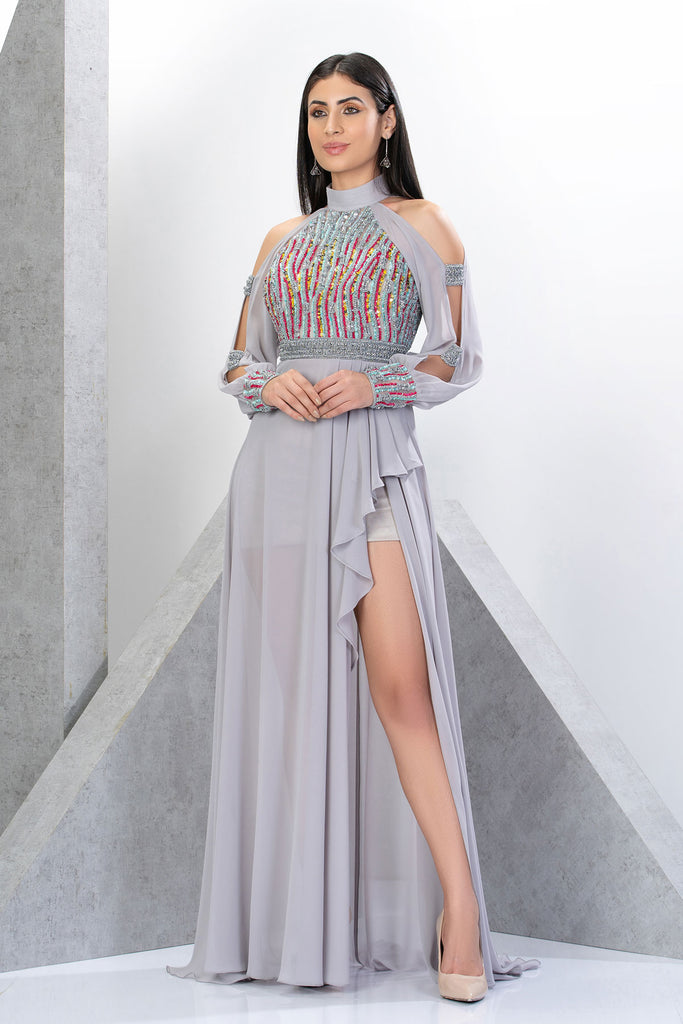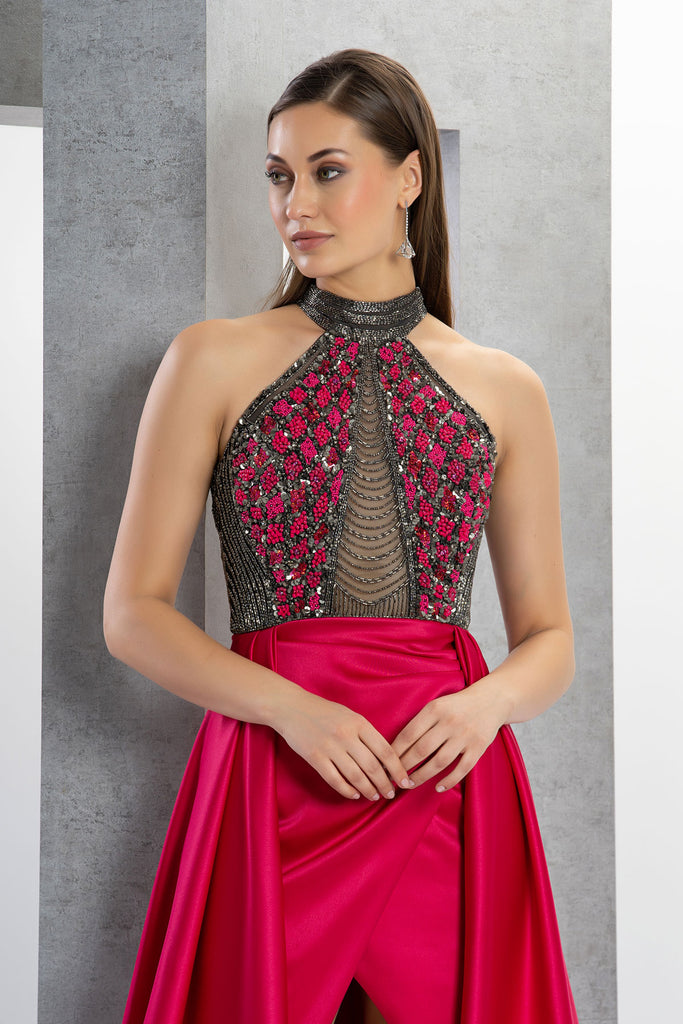 Color: Grey & Fuchsia pinkModel: Model Wears Size S, Model Height: 5'8"Fabric Composition: Sequin/tulle (100%...